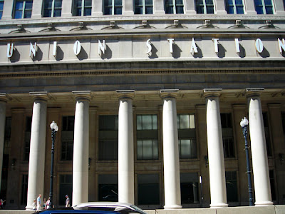 We left for Chicago last Sunday morning...bright and early!! We had decided to take the Amtrak train from Bryan to Chicago...which means we had to leave home at 5:45am! YIKES! We arrived at the TINY train station (if you can call it that) in Bryan (I really should have taken a picture of it) and began to wait. After waiting, we called Amtrak and discovered that our train was running an hour and a half late!! It finally came around 8:30am, we hopped on, and off we went! The beginning of the trip was very stop and go while we waited for other trains to pass on the tracks or stopped at other stops, but eventually we got going. We arrived at Union Station in Chicago around noon and then took a cab to our hotel.