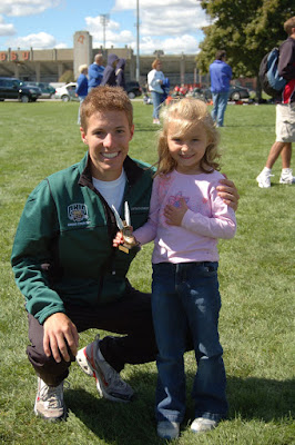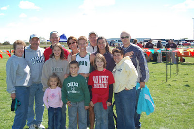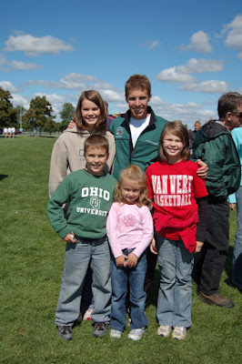 We went to BGSU couple weeks ago to watch our neighbor, Craig, run in a college cross country meet. He is a former student and his parents live across the street from us. He is just an all around great guy...and Jacob and Jenna love him - especially Jenna. She thinks Craig is just "it". Craig runs for Ohio University and is having a great season. He finished first at the BGSU meet and we were so excited for him!!!