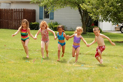 Hot fun in the summertime! Those are great pix with beautiful colors. Can't beat a sunny day with all those wild swim suit colors, and all the mess is outside, too.