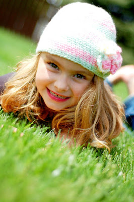 My friend Michelle had posted some photos of her daugher Kenzie on her blog wearing a really cute hat that her grandma had made for her. I left a comment about the cute hat....and soon Jenna received a surprise....her very own hat made by Kenzie's grandma! The hat looked adorable on her, so we headed to the backyard for some photos. Jenna has always been my #1 model...and she definitely lived up to her model potential for these photos. THANKS to Kenzie's grandma for making Jenna a hat, too. She loves it!!