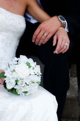 Love the colors of the bouquets with the green dresses and the turquoise dresses against the orange brick of the church.Beautiful. MOM