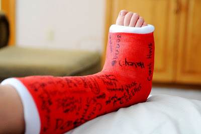 He got a temporary splint at the ER on Wednesday, and the following day had a hard cast put on at his orthopedic doctor appointment. He has been in a lot of pain and has been pretty down about not being able to play basketball. The last few days have been pretty rough and I'm hoping his pain level starts to improve soon. It's not easy to watch your child suffer and not be able to do anything about it.
