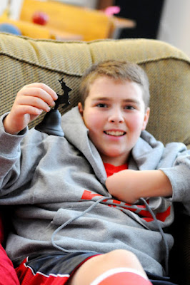 Showing off his "get well gifts" - a new VW basketball sweatshirt from Coach Froelich and Coach Bagley and a bell (to call me when he needs me) from Grandpa Covey. I'm a fan of the sweatshirt....not so sure about the bell though!