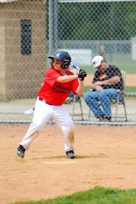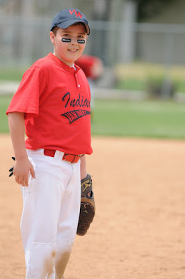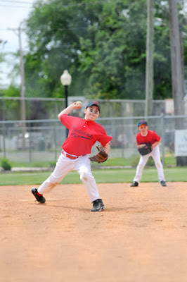 It's baseball season for us....and that means watching Jacob play lots of ball. He is in his 2nd year of Little League and Chris is his coach again this year. Baseball is definitely Jacob's sport. He loves the game and knows so much about it. So far this year he has mostly been playing shortstop or 2nd base and occasionally will pitch for a few innings.