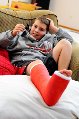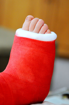 He got a temporary splint at the ER on Wednesday, and the following day had a hard cast put on at his orthopedic doctor appointment. He has been in a lot of pain and has been pretty down about not being able to play basketball. The last few days have been pretty rough and I'm hoping his pain level starts to improve soon. It's not easy to watch your child suffer and not be able to do anything about it.