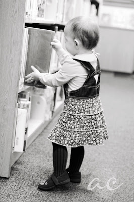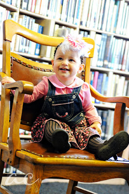 What a great place to go!! I love her sitting there with all the books, and choosing one off the shelf! Adorable.