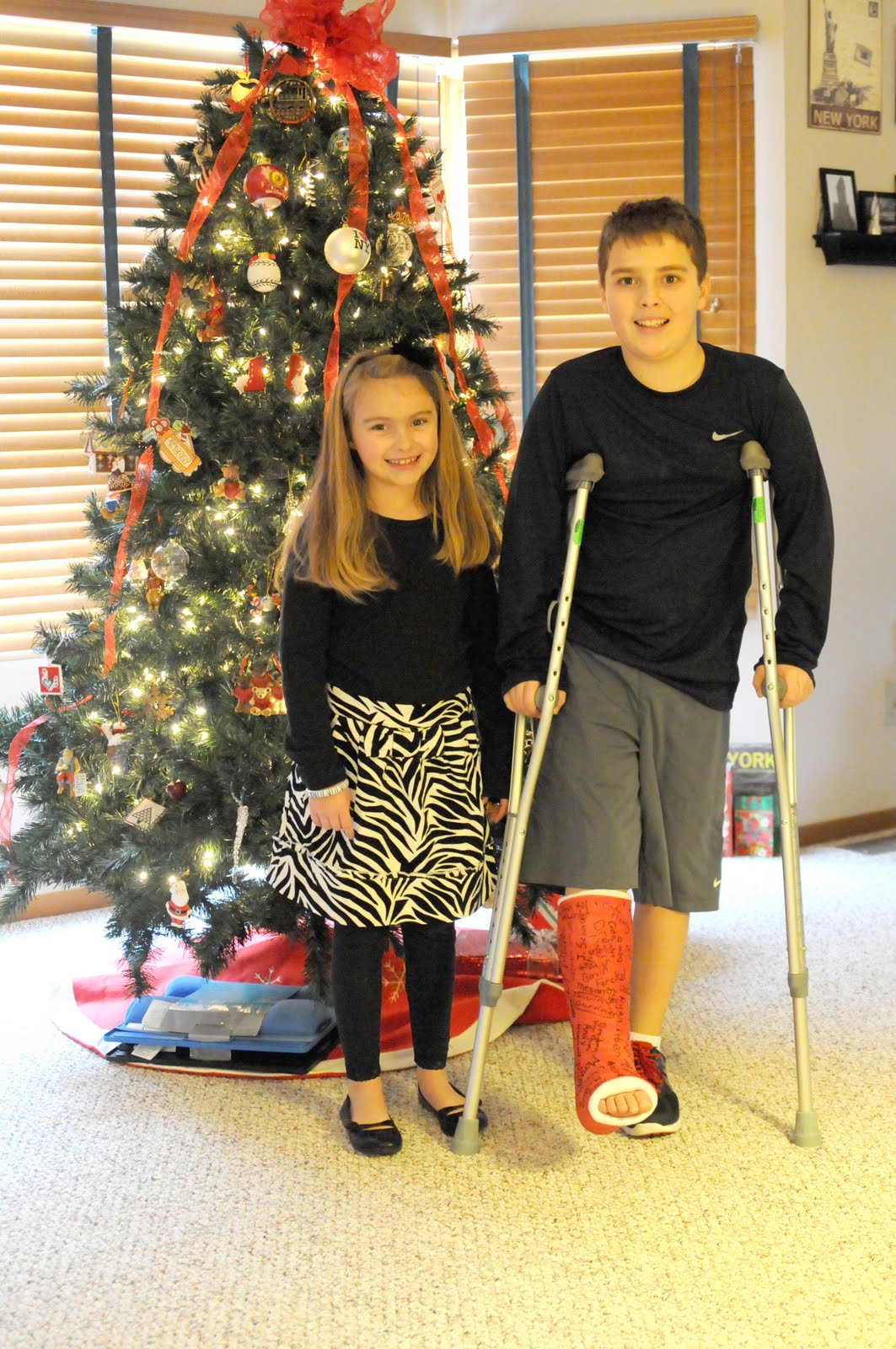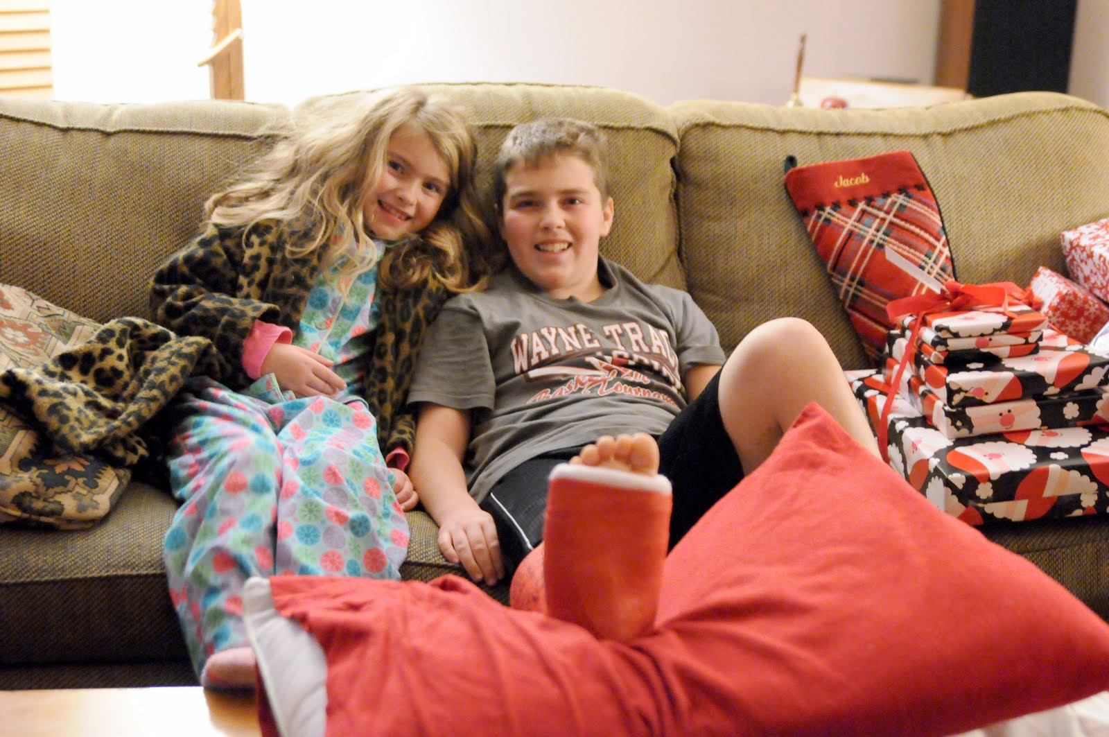 Apparently Ernie had an accident similar to Jacob's....we found him with a cast on and his leg propped on a pillow a few days before Christmas. :)
