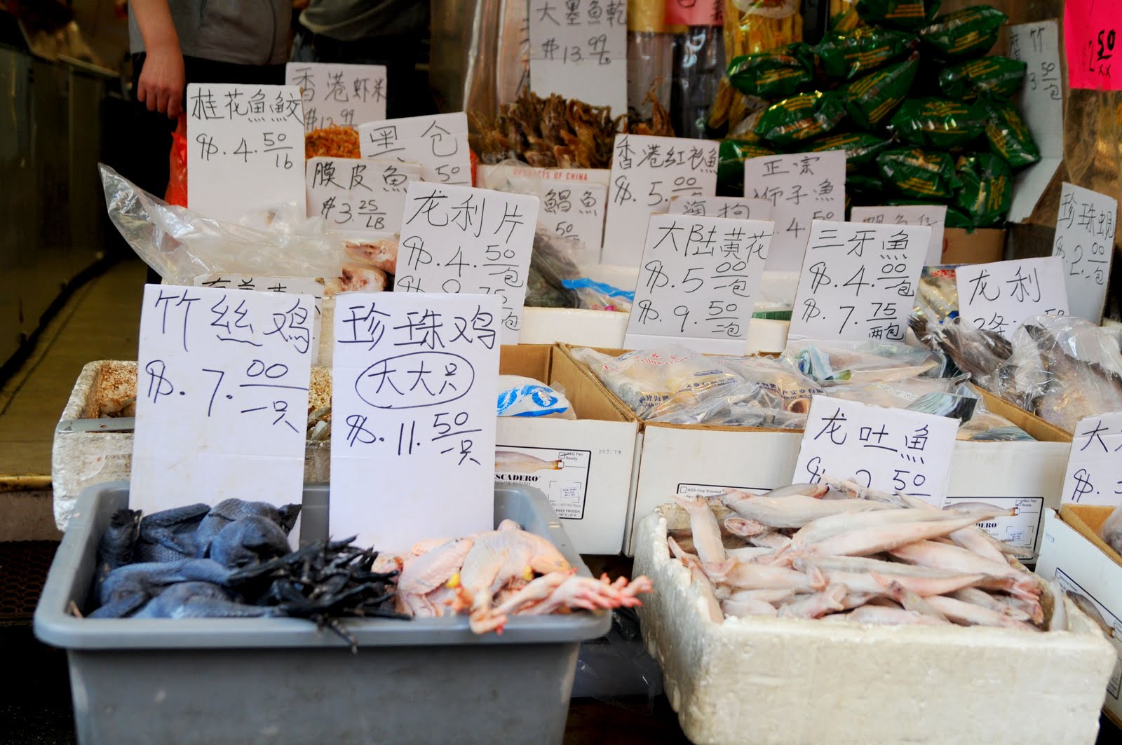 The purse bartering was totally different this time. Apparently the police cracked down, so we didn't get to visit any hidden rooms or basement hide aways this time. We had to walk a couple blocks off Canal Street and then we found women who had photos of the purses to show us. They would send someone to get the purse while we waited. Unfortunately, most of my waiting was spent right in front of this fresh seafood market. Yuck! The fish was still flopping around on the ice!