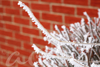 We woke up this morning to thick, thick fog. We started with a 2 hour school delay, then went to a 3 hour delay with an hour added on the end of the day, and finally ended up cancelling. It's now 11:00am and the fog is just as thick. Hard to believe we were digging out from a blizzard a week ago and now we have fog. Crazy Ohio weather! Along with the fog there is a really pretty frost covering everything, so I squeezed my boots on (not easy to do with a broken toe) and ventured outside to take some pictures. I love how they turned out!!! The first photo is the view down our road....and I think the last one is my favorite.