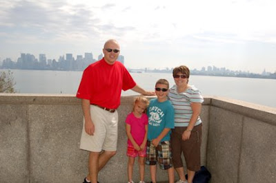 Family photo in front of the statue....very touristy! Back on the ferry....