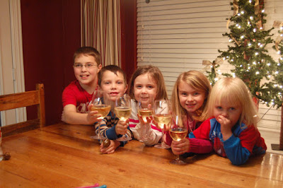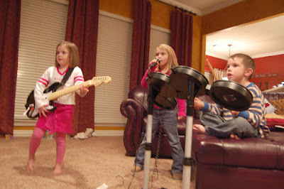We spent New Year's Eve at Brenda's - just hanging out, eating lots, and playing Rock Band. For the record, I am a pretty good drummer, but Jill rocked the lead vocals and Mia was definitely our star back up dancer. Marcus was brave enough to invite his girl friend over to join us - I'm sure she was more than a little overwhelmed by all of us! Brenda even broke out the sparkling grape juice for the kids and they thought they were so grown up. We also took them outside and let them throw poppers on the ground and make lots of noise. Sadly, I did not even try to tough it out and was in bed by 10:30 or so. I think the kids and Grandma and Grandpa managed to stay up a little bit longer, but I'm not sure anyone actually made it till midnight.