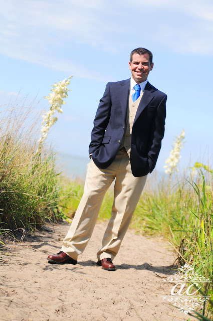 Their first look and most of the pre-ceremony photos took place at Kyle's parents' home on Lake Erie . It was a beautiful backdrop for wedding photos!